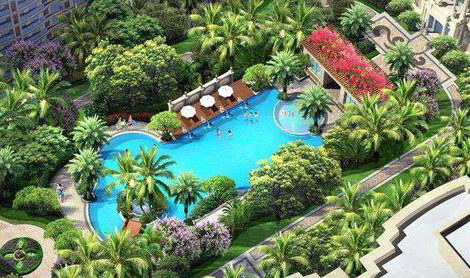 森林花園, 是通過創造性的平面布局和獨具匠心的外觀設計,將所有建筑外墻墻面都100%充分利用,全部建成空中綠化平臺,并全部種植上花草樹木,從而使整個建筑外墻都被花草樹木所覆蓋。